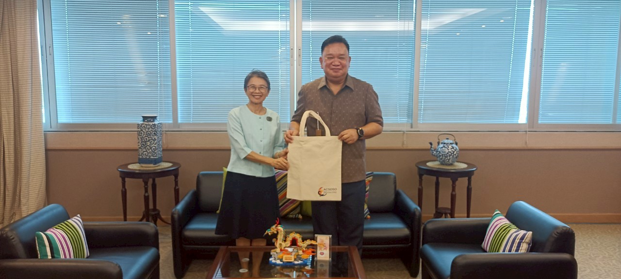 On 17 July 2025, H.E. Ms. Phasporn Sangasubana, Executive Director of the ASEAN Centre for Sustainable Development Studies and Dialogue (ACSDSD), together with representative from the Centre, paid a courtesy visit to H.E. Mr. Mungkorn Pratoomkaew, Director-General of the Department of Consular Affairs, Ministry of Foreign Affairs, Kingdom of Thailand. ðïļ